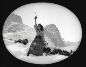 Visually, the film is a feast, particularly in its 21st-century restoration. The set of Fort Tossenstein was built on location in the Bavarian Alps, while the décor is something out of a German fairy tale. Both exteriors and interiors look as if they’re made out of vanilla frosting. Many shots are framed by all manner of mattes to alter the image size: slashing diagonals, ovals, keyholes, scalloped edges, and more.